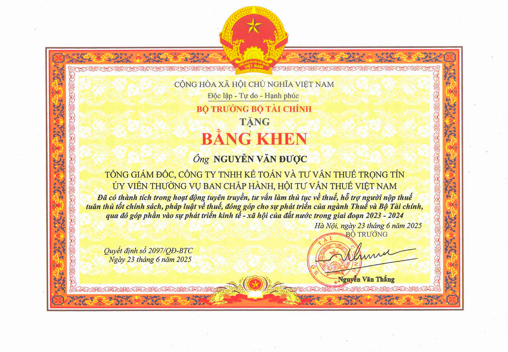 Trong Tin is proud to be the only company in Vietnam recognized with the “Vietnam Record in Tax Services”, and ranked among the Top 5 Tax Agencies officially partnered with the General Department of Taxation to provide professional tax consulting and enterprise support. Our firm has also been honored by the Ministry of Finance with multiple Certificates of Commendation and national recognitions for excellence in tax advisory and tax agency services.